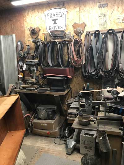 Grant makes a wide range of knives, from reproductions of antique collectors’ bowies and daggers, to exceptional kitchen knives known for balance, lightness and long-lasting edges. Grant makes his own patterned steel (Damascus) and forges steel from bearings, engine shafts and saw blades, as well as the best stainless steels on the market.
